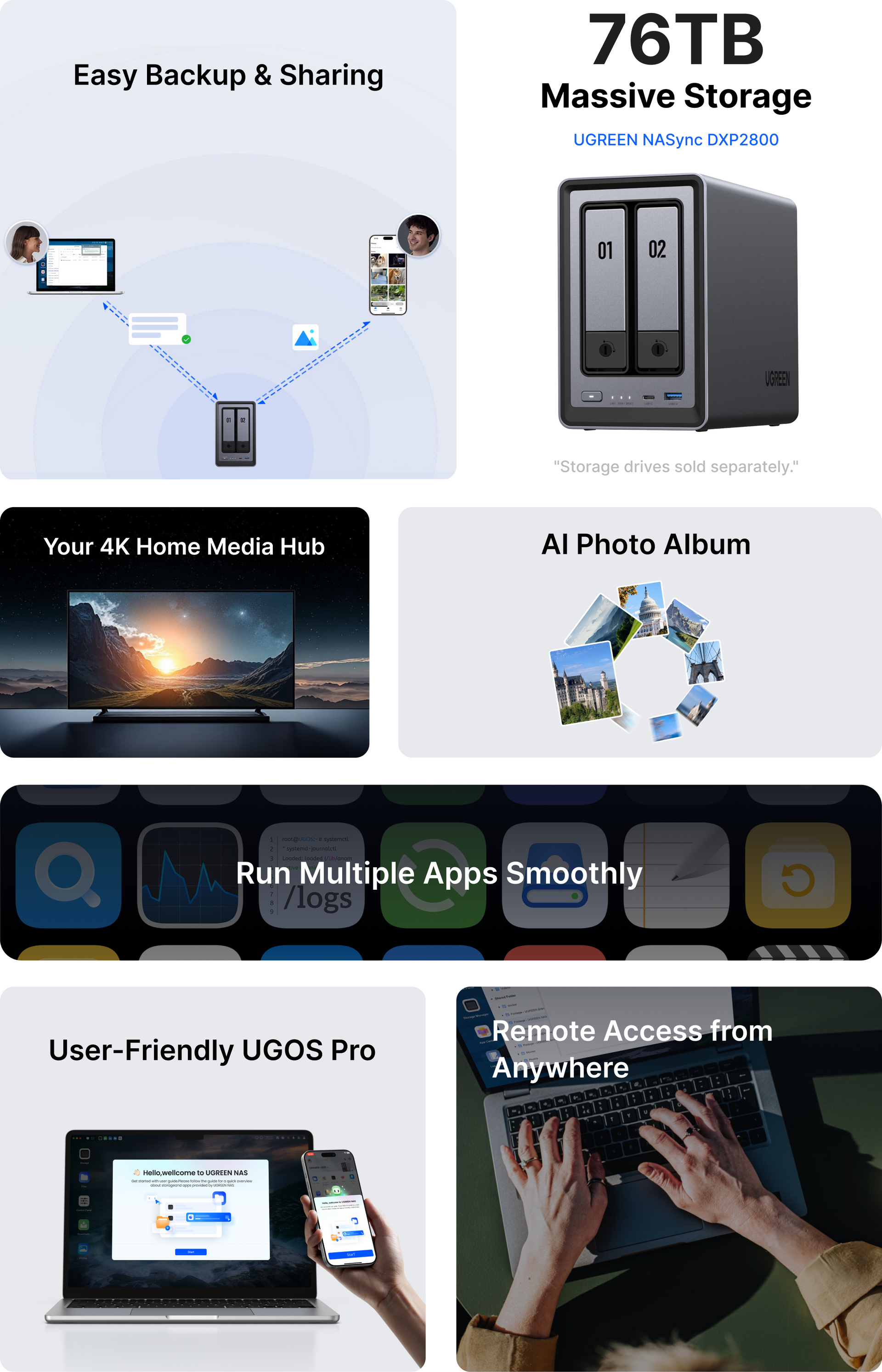 - 2 Bays And 76TB Max: The two SATA bays support up to 30TB each, and you can also install two additional compact M.2 NVMe SSD drives up to 8TB each (for SSD caching additional fast storage). With all slots used, the maximum capacity is a vast 76TB.