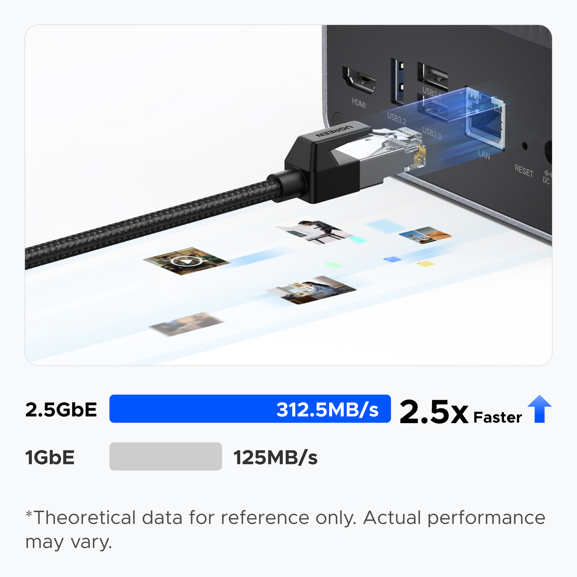 Back up 1GB in mere seconds using the high-speed 2.5GbE network port or one of the 10Gbps USB ports. Significantly faster than the 1GbE ports found on comparable NAS devices.