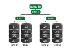 Pros:Combination of two RAID 1 disks, which has both read and write performance and security. If any hard drive in the two RAID 1 sets is damaged, new drives can be used to replace the damaged drive and recover data.