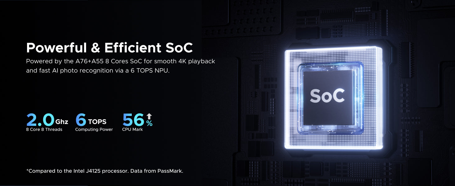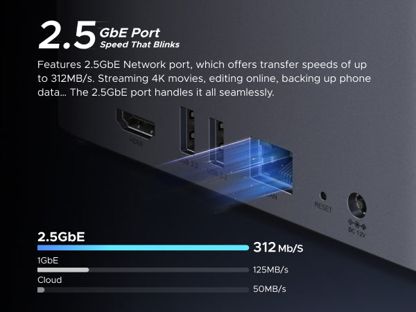 • Powerful and efficient hardware: Powered by the A76+A55 8 Core and 2.5GbE, everything runs energy-efficiently and smoothly – even with multiple applications. Transfers 1 GB in just 3 seconds – ideal for video editing, 4K streaming, and everyday data storage.